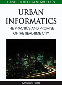 Foth, M. (Ed.) (2009). Handbook of Research on Urban Informatics: The Practice and Promise of the Real-Time City. Hershey, PA: Information Science Reference, IGI Global. ISBN 978-1-60566-152-0 (hardcopy) ISBN 978-1-60566-153-7 (ebook). (eprints >)
